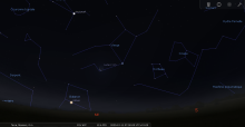 - A 21h39, la Lune est conjointe à Vénus dans le plan équatorial, la planète 0°48’ au Sud ; élongation solaire de Vénus 25° Ouest.