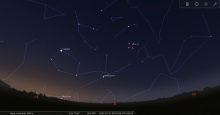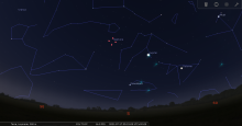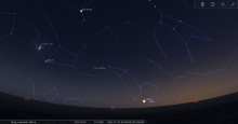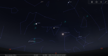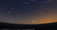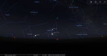 remarquable en début de nuit du 19-20 : à 23h00, les deux astres sont au Sud-sud-ouest à une trentaine de degrés de hauteur.
