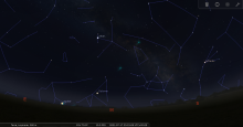 Elle culmine au plus bas dans l’hémisphère Nord, à 19° de hauteur pour la latitude 45°N, aux alentours de 0h00 le 22 juillet et de 1h00 le 23.