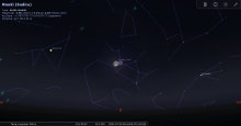 A 21h34, la Lune est conjointe à l’étoile Nunki dans le plan équatorial ; Δ+0°39’, ascension droite 18h56m.