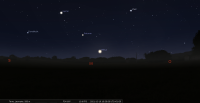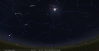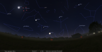 - A 6h53, la Lune est conjointe à Uranus dans le plan équatorial, la planète 1°33’ au Nord ; élongation solaire de la Lune 137° Est.