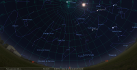 - A 1h43, la Lune est conjointe à Neptune dans le plan équatorial, la planète 4°14’ au Nord ; élongation solaire de la Lune 89° Est.