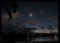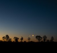 – A 6h10, la Lune est conjointe à Uranus dans le plan équatorial, la planète 0°24’ au Nord ; élongation solaire de la Lune 4° Est.
