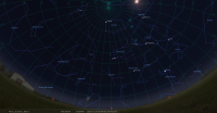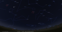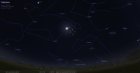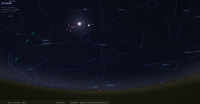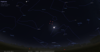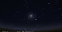Ce soir, Jupiter culmine à 22h56 pour notre localisation et la Lune à 23h21. Jupiter se couche à 5h49 et la Lune à 6h58.