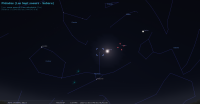 Cette nuit, pour notre localisation, la Lune culmine à 0h14 et les Pléiades à 0h17.