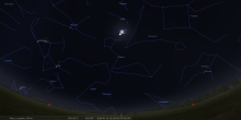– A 7h45, la Lune arrive devant la constellation du Bélier (Ari) ; longitude 29°10’ (30e BEL) ; latitude +0°50’, monte.