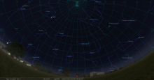 Elle culmine au plus haut dans l’hémisphère Nord, à 73° de hauteur environ pour la latitude 45°N,