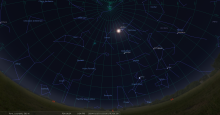 – A 20h37, la Lune est conjointe à Uranus dans le plan équatorial, la planète 2°57’ au Sud ; élongation solaire d’ Uranus 109° Est
