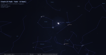 Au soir de ce jour, pour notre localisation, Aldébaran culmine à 21h26 et la Lune à 21h49