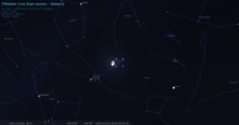 - A 15h23, la Lune est conjointe aux Pléiades dans le plan écliptique, l’amas ouvert (Messier 45) 0°48’ au Nord. Page spéciale PGJ