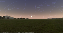 Les deux astres sont alors au Sud-ouest, à 60° de hauteur et la portion éclairée de la Lune est de 78%.