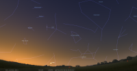 L’ensemble à la tombée de la nuit ; les Pléiades se couchent le 17 février à 2h43 et la Lune à 2h53