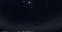 – A 2h59, la Lune est conjointe à Uranus dans le plan équatorial, la planète 3°13’ au Sud ; élongation solaire d’ Uranus 82° Est