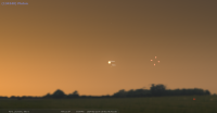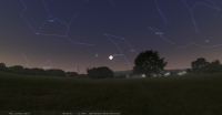 Les deux astres sont alors à l’Ouest-nord-ouest, à 16° de hauteur ; la portion éclairée de la Lune est de 74%.