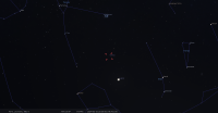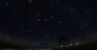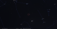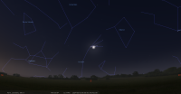 - A 3h04, la Lune est conjointe à Pluton dans le plan équatorial, la planète naine 2°13’ au Nord ; élongation solaire de Pluton 18° Ouest
