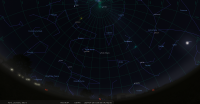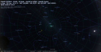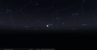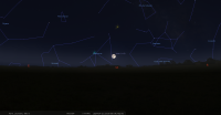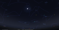 - A 14h42, la Lune est conjointe à Pluton dans le plan équatorial, la planète naine 1°30’ au Nord ; élongation solaire de Pluton 178° Ouest
