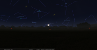 Cette nuit, pour notre localisation, Saturne se lève à 23h23 la Lune à 23h26.