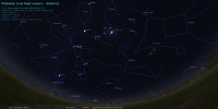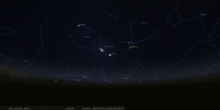 Assez difficile à observer au télescope, bas sur l’horizon Ouest-nord-ouest en tout début de nuit,