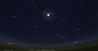 – A 0h45, la Lune arrive devant la constellation des Poissons (Psc) ; longitude 8°27’ (9e BEL) ; latitude +0°10’, monte.