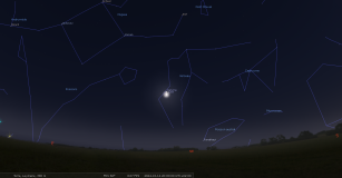 - A 17h16, la Lune est conjointe à Pluton dans le plan équatorial, la planète naine 1°38’ au Nord ; élongation solaire de Pluton 100° Est