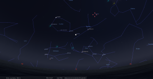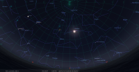 – A 20h11, la Lune est conjointe à Saturne dans le plan équatorial, la planète 0°09’ au Sud ; élongation solaire de Saturne 141° Est