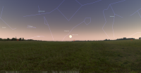 déclinaison 0° ; ascension droite 0h 05m. Longitude écliptique 1°09’ (2e BEL), latitude -0°30’, monte