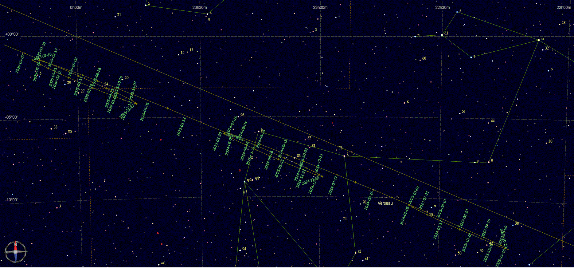 De 2025 à 2035 elle sortira des limites zodiacales Sud, chaque année, grosso modo de juillet à décembre,