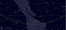 - A 5h43, la Lune atteint sa latitude minimale : -5°02’13" au Sud du plan de l’écliptique ("ventre du Dragon") ;