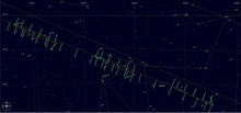 En raison de la précession de l’axe des nœuds lunaires, ses hauteurs maximales de culmination augmentent d’ octobre 2016 à septembre 2026.