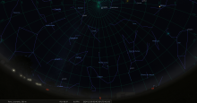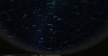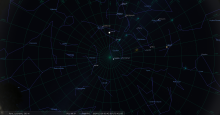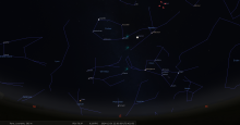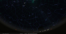 il se trouve à 1° de hauteur pour notre localisation, au Sud-ouest (azimut 225°) ;
