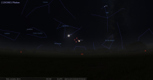 – A 5h25, la Lune est conjointe à Pluton dans le plan équatorial, Δ -1°18’ ; élongation solaire de Pluton 46° Est