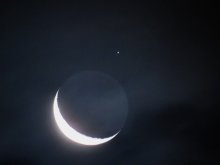- Aux alentours de 17h30, premier croissant de la nouvelle lunaison, théoriquement visible seulement à l’aide d’un instrument,
