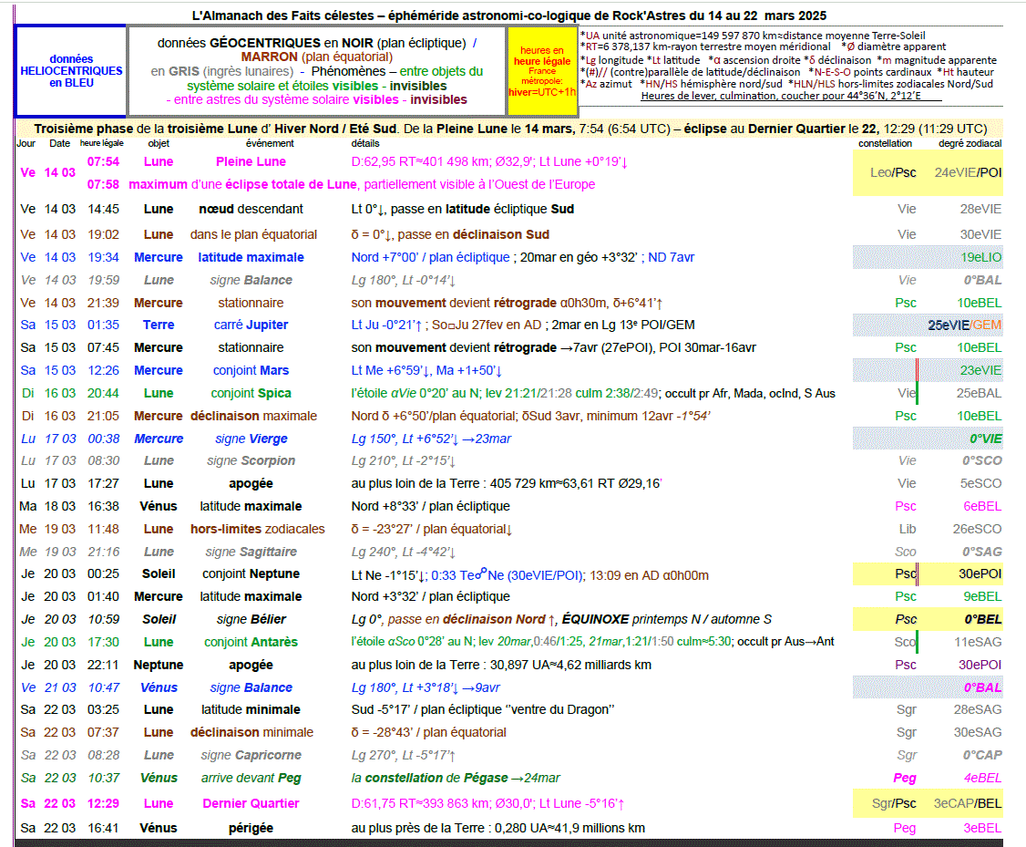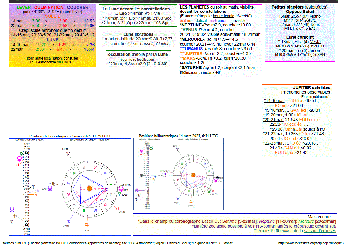 - La lettre de l’IMCCE de mars 2025 n°221. Ce mois-ci :