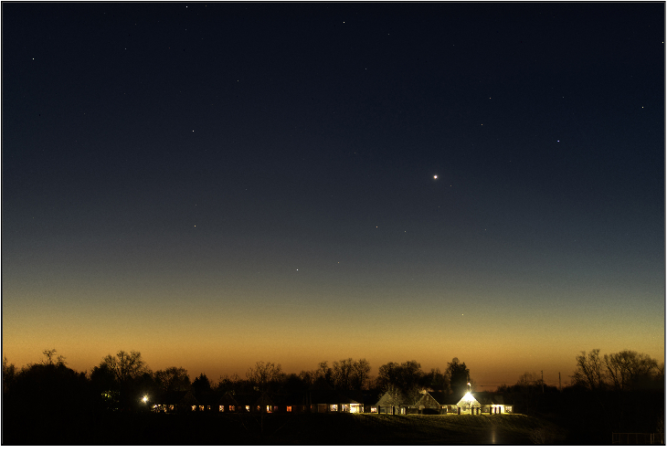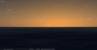 Le 14 mars au soir, elle se lève à 19h20 pour notre localisation, soit 24 minutes après le coucher du Soleil,