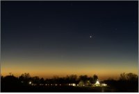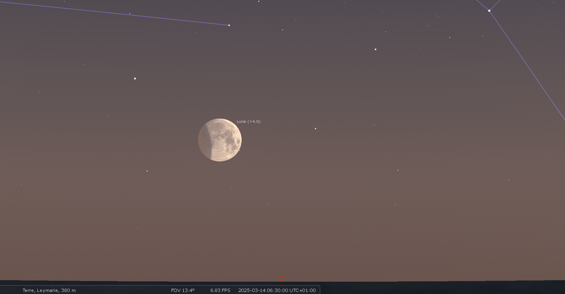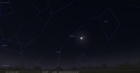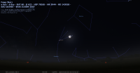 les deux astres sont alors à sont alors au Sud-sud-est à 16° de hauteur environ et la portion éclairée de la Lune est de 72%.