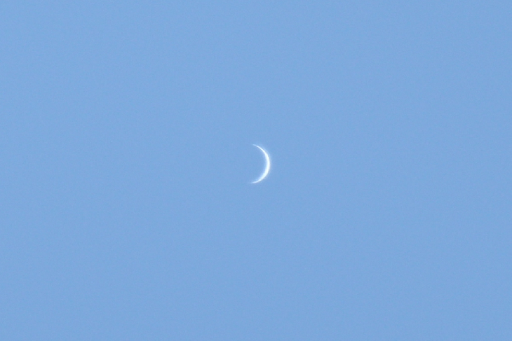 Le 12 avril au soir, la Lune se lève à l’Est-sud-est, à 20h18 pour notre localisation, soit 15 minutes avant le coucher du Soleil,