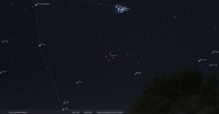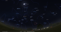 Au cours de cette nuit, pour notre localisation, la Lune culmine à 20h44 et Mars à 20h45.