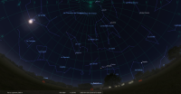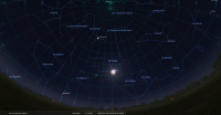 - A 3h09, la Lune arrive devant la constellation du Cancer (Cnc) ; longitude 118°08’ (29e CAN) ; latitude +4°31’, descend.