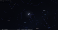 - A 18h44, la Lune est conjointe à Pollux (beta Gémeaux ; m 1.1) dans le plan écliptique, l’étoile 1°53’ au Nord ;