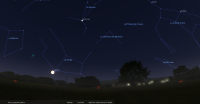 - A 14h29, la Lune arrive devant la constellation de la Vierge (Vir) ; longitude 173°39’ (24e VIE) ; latitude +0°20’, descend.