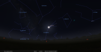 – A 6h22, la Lune arrive devant la constellation du Scorpion (Sco) ; longitude 240°52’ (1er SAG) ; latitude -4°40’, descend.