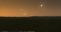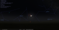 Au matin de ce jour, pour notre localisation, l’invisible Pluton se lève à 3h55 et la Lune à 3h57.