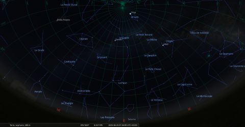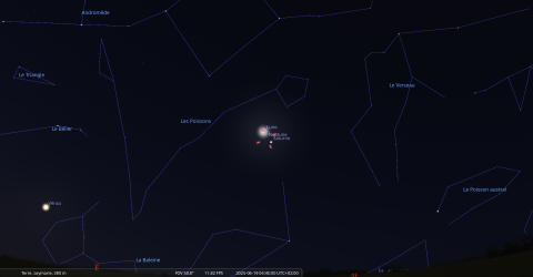 – A 6h25, la Lune est conjointe à Neptune dans le plan équatorial, élongation solaire de Neptune 85° Ouest ; ascension droite 0h 09m