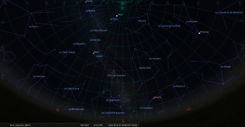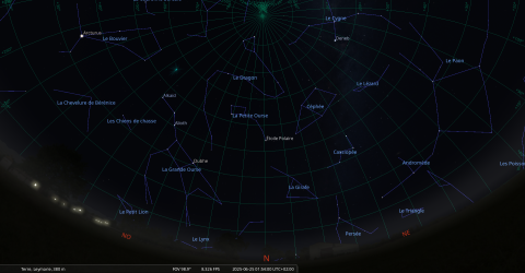 Aujourd’hui, pour notre localisation, la Lune se lève à 3h47 et Uranus, invisible, à 4h11,