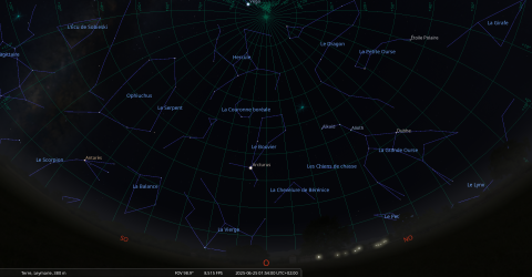 - Aux alentours de 1h00, Jupiter réapparaît après son occultation par le disque du Soleil.