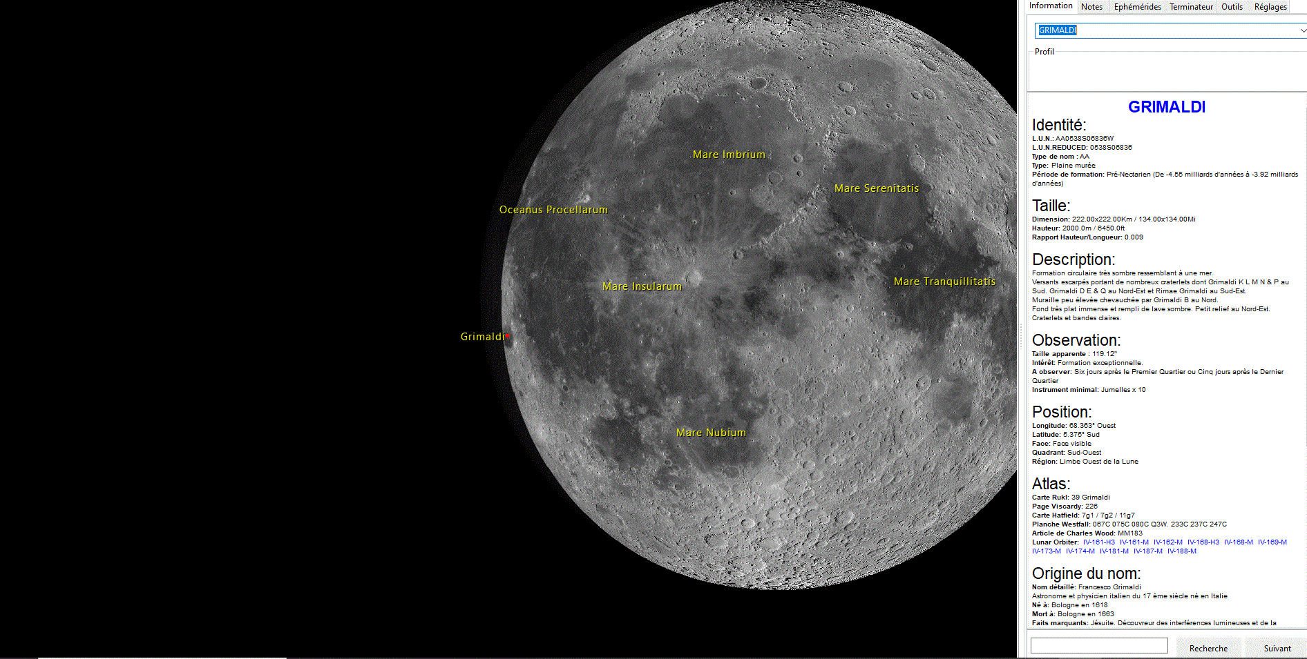 Cartes du ciel 3.8 ou Atlas virtuel de la Lune
