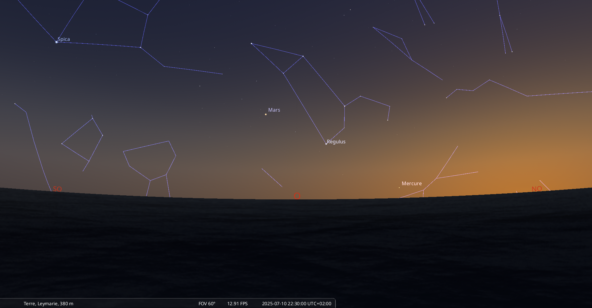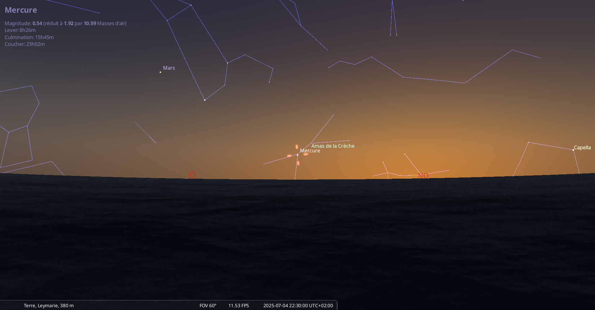- A 13h07, Mercure est conjointe à l’amas de la Crèche dans le plan écliptique