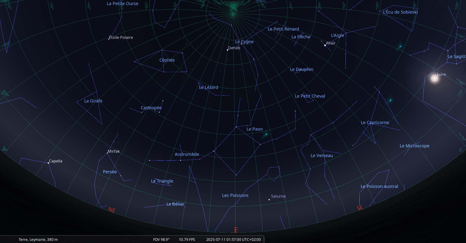 – A 10h30, maximum attendu de l’ essaim météoritique des Pégasides de juillet (JPE)