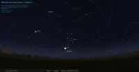 – A 0h42, la Lune est conjointe à Pluton dans le plan équatorial, la planète naine 0°01’ au Sud ; élongation solaire de Pluton 166° Ouest