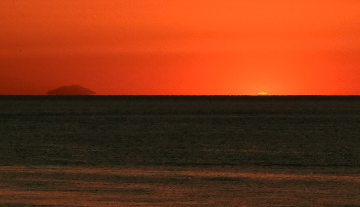 A l’est-nord-est, à 9° de hauteur, alors que le Soleil est à 9° sous l’horizon